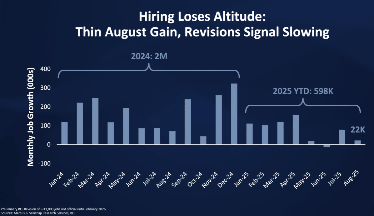 βοΈ 1. Market MovesOverview: Fed cuts boost CRE optimism with cap rates easing, office recovery hinges on Class A demand, and new-home sales surge 20% on lower rates. β 1. Fresh Appetite: Fed cuts are boosting CRE optimism, with lower debt costs fueling capital inflows, tighter spreads, and early signs of sector-by-sector cap rate compression. β‘οΈ Why it matters: Falling rates may revive CRE deal flow and repricing opportunities. β 2. Flight to Quality: National office vacancy sits at 18.7%, with leasing driven by Class A assets while construction stays muted and regional market gaps widen. β‘οΈ Why it matters: Flight-to-quality shapes leasing, but excess vacancy hinders broader office recovery. β 3. Homes Sales Surge: US new-home sales surged 20.5% in August, reaching 800,000 annualized pace, fueled by lower mortgage rates and builder incentives. β‘οΈ Why it matters: Sales rebound trims inventory, but sustained momentum depends on rates, jobs. π 2. Chart to WatchJob growth slowed sharply: 2M jobs added in 2024 vs. just 598K through August 2025, signaling a cooling labor market. β‘οΈ Why it matters: Weaker hiring raises recession risks and pressures Fed toward additional rate cuts. π° 3. Capital To Knowβ βBasis Investment Group, a direct and full-service lender and equity investor, originates diversified CRE loans and investments across the capital stack of stabilized, transitional and development assets nationwide. Basis is a Minority and Woman-Owned Business.