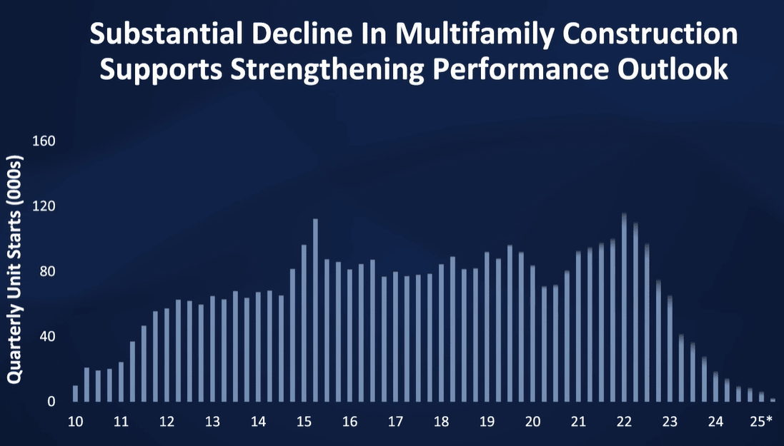 ⭐️ 1. Market MovesOverview: CMBS issuance climbs to $30.7B signaling confidence, Linneman sees up to three 2025 cuts, and 73% of Americans say it’s a bad time to buy. 1. Q3 Issuance Rising: CMBS issuance hit $30.7B in Q3 2025, driven by single-borrower deals, putting annual volume on pace for the strongest year since 2007. ➡️ Why it matters: Strong CMBS activity signals renewed liquidity and investor confidence in CRE debt. 2. Linneman’s Outlook: Economist Peter Linneman told Walker & Dunlop’s webcast the Fed may cut rates three times by 2025 as housing and CRE data stay uncertain. ➡️ Why it matters: Expecting more rate cuts could spur new CRE lending and investment. 3. Home Buyer Pessimism: Fannie Mae’s September survey shows 73% of Americans think it’s a bad time to buy, as affordability and mortgage rates strain confidence. ➡️ Why it matters: Weak housing sentiment signals affordability stress that could cool CRE demand. 📈 2. Chart to WatchMultifamily construction starts have plunged to decade lows, tightening future supply and supporting a stronger performance outlook for existing and stabilized assets. ➡️ Why it matters: Lower supply cushions rents and occupancy, boosting multifamily investment resilience. 💰 3. Capital To KnowCirrus is a real estate investment management firm committed to developing long-term borrower, partner and investor relationships that result in mutual benefit and shared success.