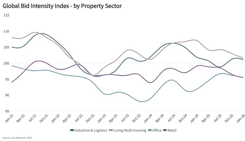 βοΈ 1. Market MovesOverview: Hike fears return as oil tops $110, rising yields worsen refinance math, and CRE fundraising rises 13% but higher rates cap recovery. 1. Rate Hike Potential: Markets now price a potential Fed rate hike as inflation fears rise, with oil reaching above $110 and recession risks increasing amid stagflation concerns. β‘οΈ Why it matters: Higher-for-longer rates further pressure CRE financing and valuations. 2. Refinance Math Deteriorates: Treasury yields are surging, worsening refinance math and pushing CRE borrowing costs higher as markets rethink Fed cuts and price in prolonged higher rates. β‘οΈ Why it matters: Higher yields pressure valuations, refinancing, and deal feasibility. 3. Fundraising Up: Private CRE fundraising rose 13% in 2025, led by opportunistic and debt strategies, but higher rates continue to cap recovery and limit upside. β‘οΈ Why it matters: Capital returning, but elevated rates still constrain market growth. π 2. Chart to WatchBid intensity is stabilizing across CRE sectors, with narrowing bid-ask spreads and more competitive bidding as capital returns and investor sentiment improves. β‘οΈ Why it matters: Improving liquidity signals early recovery in transaction markets. π° 3. Capital To Know